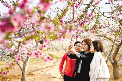 4月30日,秦皇岛北戴河费石庄村千亩桃花竞相绽放,吸引众多游客前来赏花。该村还推出了以桃文化为主题的特色民宿、餐厅及公益书屋等,游客畅游其中,尽享美丽生态乡村的魅力。 记者 赵 杰 通讯员 张 悦摄