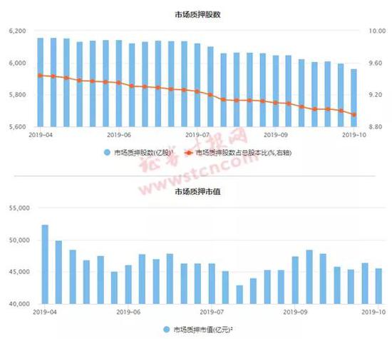 Wind统计数据显示,截至今年10月24日,两市市场质押股数5964.89亿股,市场质押股数占总股本8.95%,市场质押市值为4.56万亿元。质押股数和质押市值呈现持续下降的趋势。