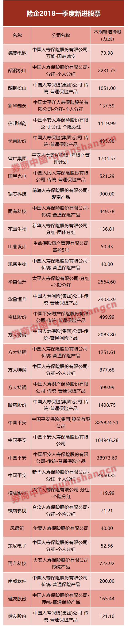 国星光电、华鲁恒升等股票同时受到好几家险企的青睐。例如国寿、人保寿险、太平人寿旗下都有保险产品账户增加了对国星光电的投资,国寿、太平人寿旗下亦有保险产品账户选择了华鲁恒升。