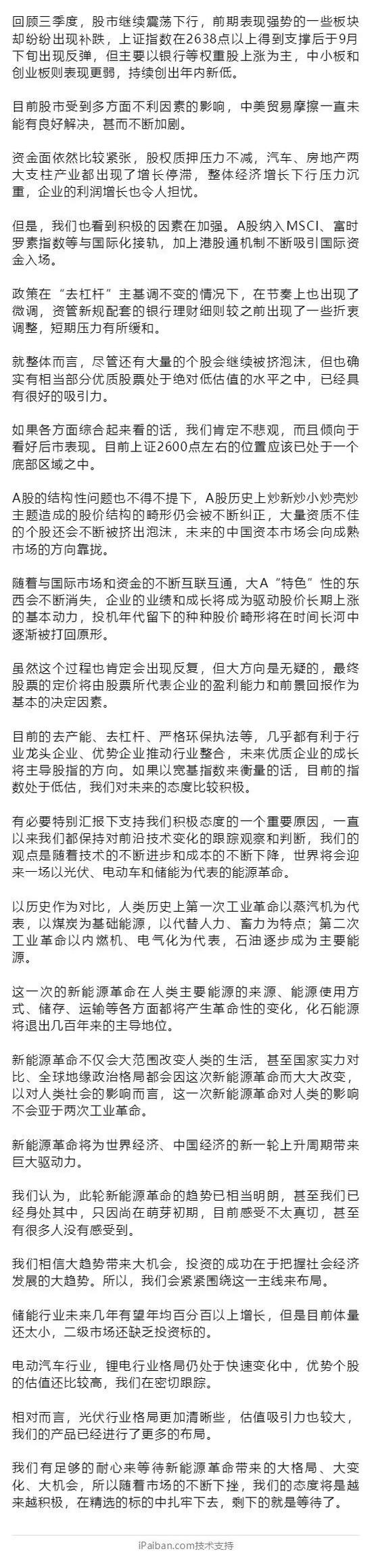 两次看空,让杨东获得了良心总经理的美誉。目前他已经是私募基金宁泉资产的掌门人,近日,他给投资人发了封信,叫《2018年第三季度回顾与展望》。