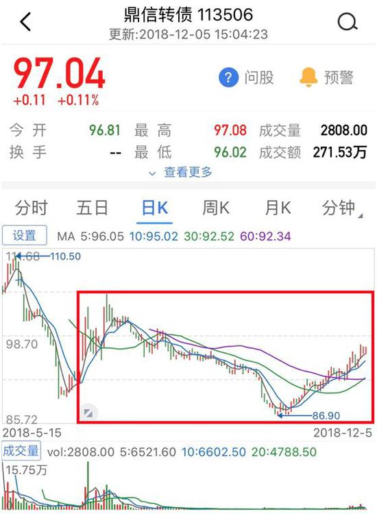 在2018年6月,鼎信转债价格出现了大跌,从110元跌到了90元,6月底又出现大涨。