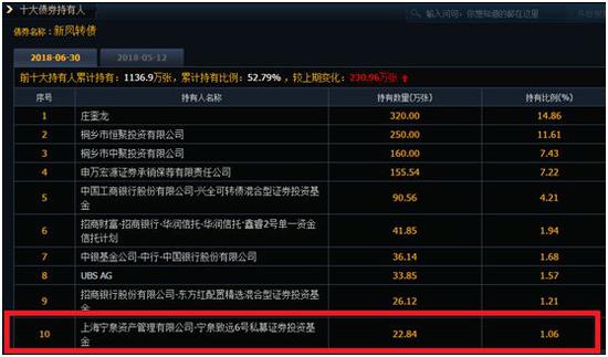 新凤转债2018年中期持仓显示,杨东的宁泉资产旗下的宁泉致远6号持有该债券22.84万张,对应市值2200万元左右。