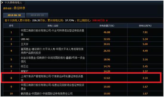 宁泉资产的另一只转债波动更大一些,为鼎信转债,宁泉致远6号在2018年中期持有12.62万张,也就是1200万元左右。