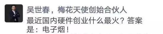 有投资人指出,最近国内硬件创业什么最火?答案是:电子烟!