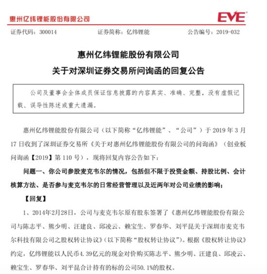 3月17日晚间,亿纬锂能发布关于对深圳证券交易所问询函的回复公告称,自2017年7月1日起,麦克韦尔不再纳入亿纬锂能的合并报表范围,电子雾化器业务不再是亿纬锂能的主营业务之一。亿纬锂能不涉及电子烟的制造和销售,更不涉及“3 15”晚会所关注的烟液超标问题。