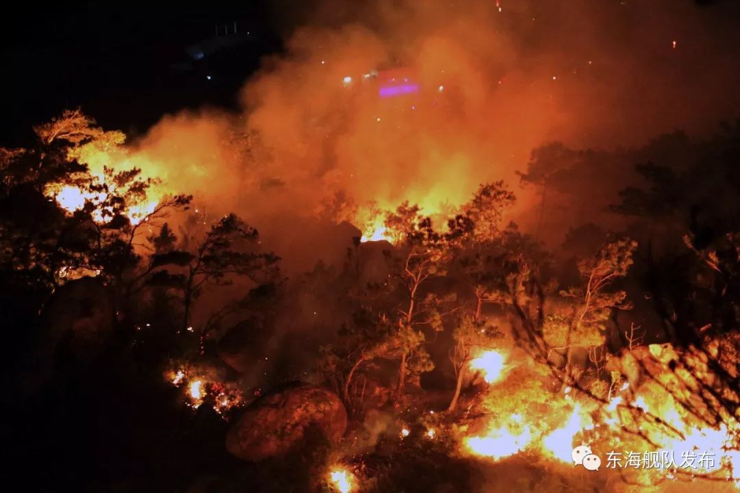 3月17日晚,经过东海舰队某护卫舰支队官兵近3个小时的英勇奋战,成功扑灭了驻地山体大火,保证了当地人民群众生命财产、旅游景点设施安全,受到当地政府和人民的赞誉,充分展示了水兵良好形象。