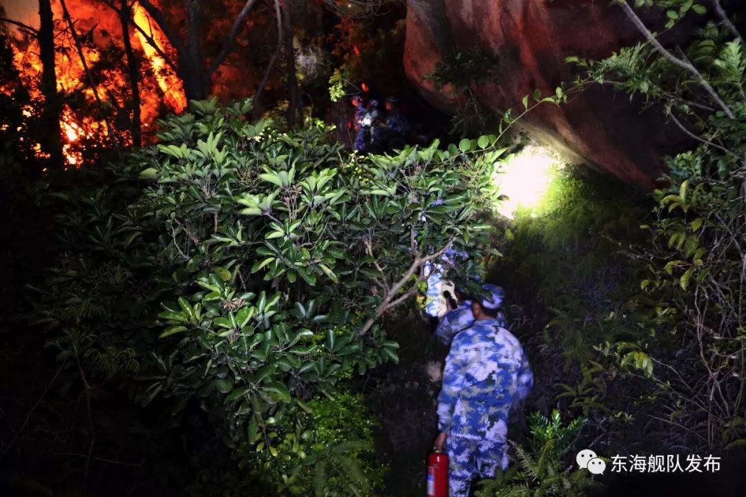 旅游景点突发山林大火,东海舰队水兵紧急驰援