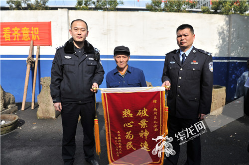 “这个石狮子放在我们老屋前已经有上百年的历史了,世世代代陪伴着我们,这次丢了以后,心里总感觉有个坎过不去,觉得做事不太顺,现在公安机关把案子破了,狮子也找回来了,我们全家都非常高兴,也非常感激。”刚领到石狮子的熊大爷高兴得合不拢嘴,他还特意制作了一面写着“破案神速 热心为民”的锦旗送到办案民警手中。
