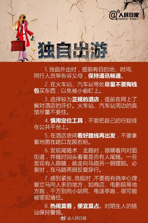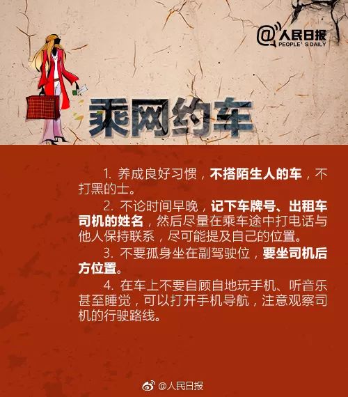 警方提醒女性特别是青年女性,独自出行时,不要图方便搭乘没有安全保障的黑车或陌生人的车,以免给犯罪分子以可乘之机。下面几张图片是小编整理的女性独自外出需要注意的地方: