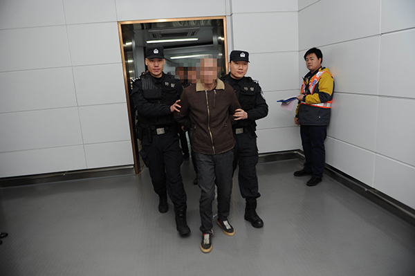 警方抓获犯罪嫌疑人邓军(前排中,化名)。渝中警方 供图