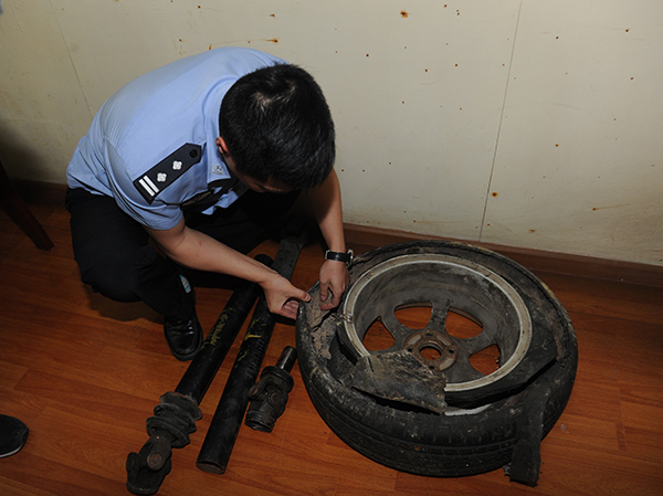 嫌疑人将毒品藏在轮胎里。渝中警方 供图