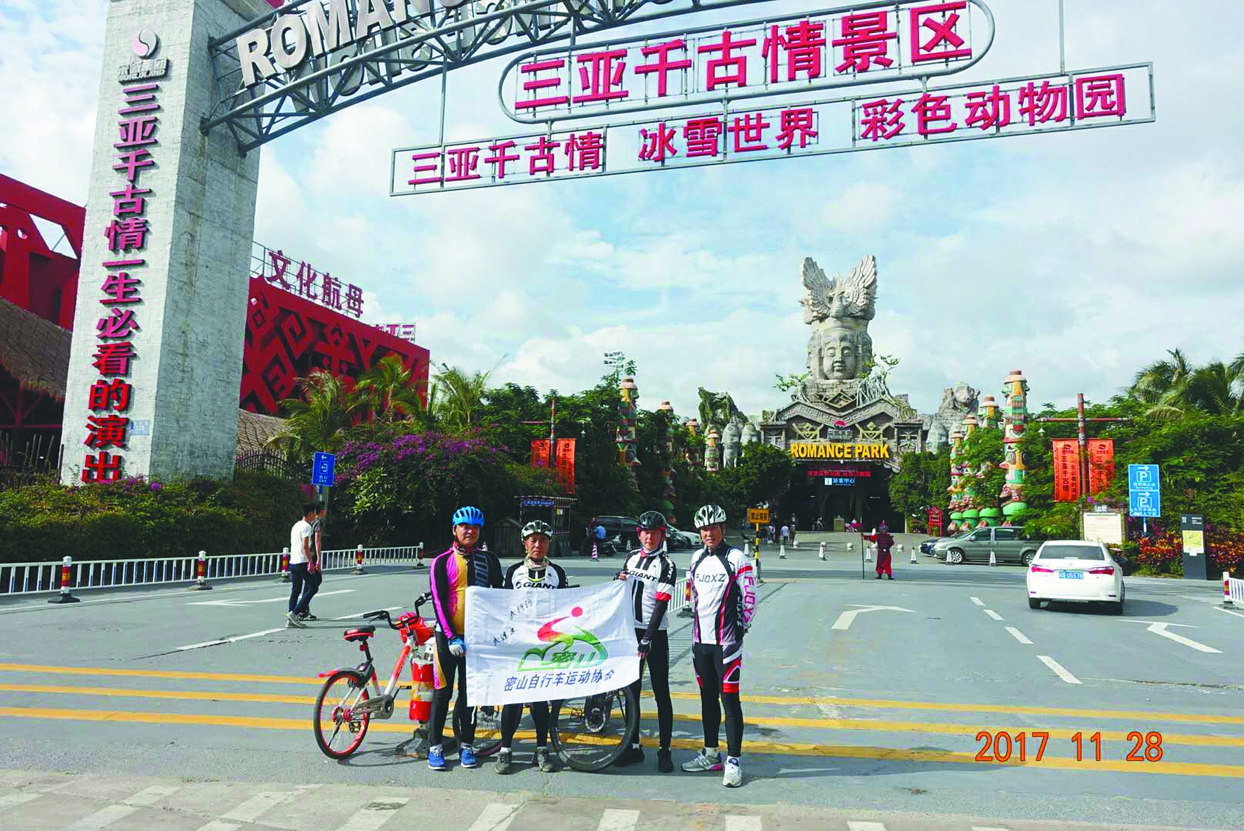 2017年11月28日,是值得纪念的一天,赖双义和孙茂武乘渡轮由海口转至三亚,二人完成了近万公里的行程。他们把密山自行车运动协会的大旗分别插在了中国北端漠河和南端三亚,书写了长途骑行新篇章,完成了许多年轻人都不敢尝试的极限挑战。