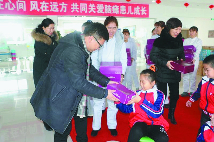 生活报讯(记者何兴丽文/摄)10日,哈市社会科学界联合会党组书记杨天悦携爱心人士徐震、孟繁静夫妇,来到位于平房区的博能集团脑瘫患儿救治救助中心慰问,为孩子们捐赠500双鞋。他们陪康复中心的孩子交流、做康复练习,一起度过了意义非凡的快乐时光。