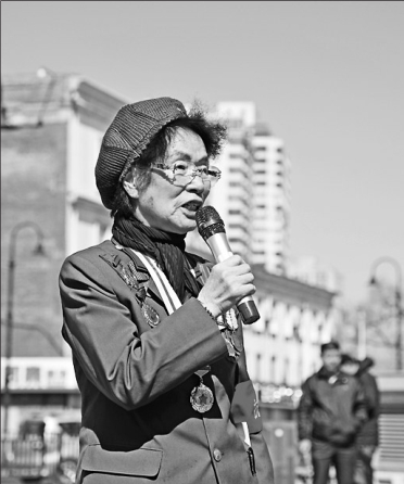 95岁高龄的抗联老战士李敏演唱自己作词的歌曲《哈尔滨,英雄的城市》。