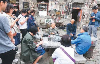 “俺郭亮大队要学习老愚公,领着郭亮人修一条山路!”40年前,申明信带领村中十三壮士,以钢钎铁锤等简易工具,5年多时间内历尽艰险,在峡谷绝壁中凿出长达1250米的隧洞公路。道路既通,生机不断。当地用石板建成的村落和民风民俗,吸引艺术家纷至沓来,如今郭亮村已成为全国电影和绘画创作基地,实现向服务业转型的产业升级。