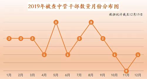 据记者统计,从1月6日中国科协原党组成员陈刚落马,到12月1日马明被查,截至目前,中纪委网站“审查调查”栏目已发布了20名中管干部接受审查调查消息。除11月外,每月均有中管干部落马(详细数据见上表),其中5月及8月查处人数最多,为3人。对比去年全年23人的“成绩单”,中纪委今年“打虎”力度不减。