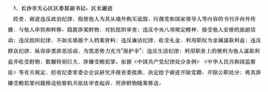 谢进,男,汉族,1968年6月出生,湖南望城人,在职研究生学历,2016年11月任天心区区长,去年9月落马。