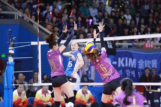 决胜局开局,双方纠缠至6平,此后上海女排在曾春蕾的发球轮连进4分,10比6领先,胜利在望。